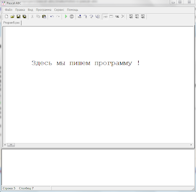 Ниже расположена окно вывода (в нём будет показан результат нашей программы).